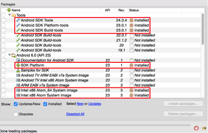 - Android SDK Build-tools 必须包含 (23.0.1)